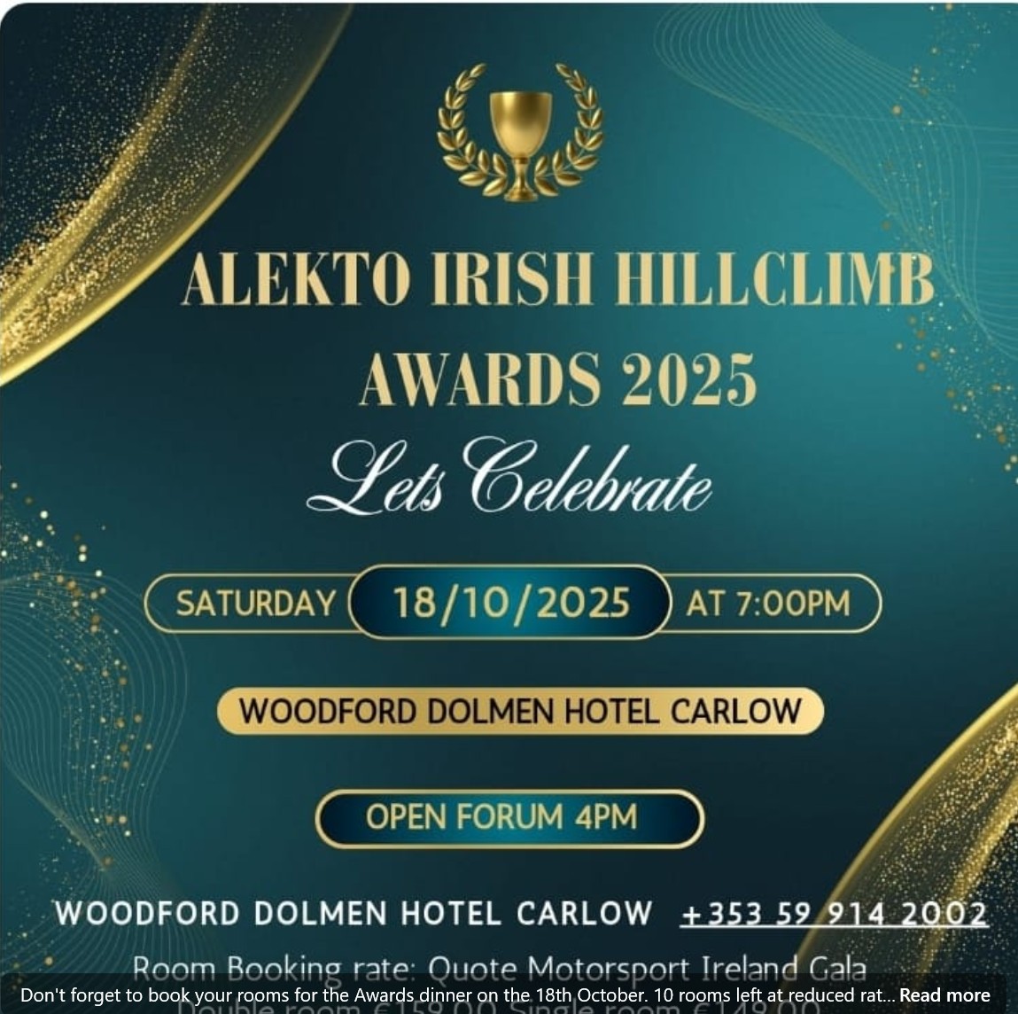 We hope you can all join us in the Woodford Dolmen Hotel in Carlow for our end of year bash ! Tickets will go on sale on Monday 22.09.2025 and we would kindly ask that if you are thinking of coming that you buy your tickets before the 10.10.2025 so that we can advise the hotel on numbers for dinner & how many barrels of beer will be needed. We hope to see you all there. All welcome. Bring the dancing shoes !